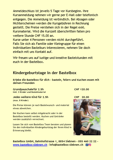 Bastel Box Siebnen ist mehr als nur ein tolles Fachgeschäft mit einem Riesen-Sortiment. Bastel Box Siebnen ist gleichzeitig Ihr Kompetenz-Zentrum im Bereich Bastel-Know-How.